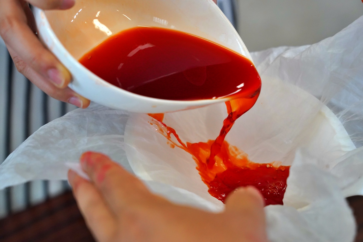 7月につくった紅餅からいったいどのようにして一%の紅を抽出するのか。紅の神秘に迫る本紅抽出体験です。