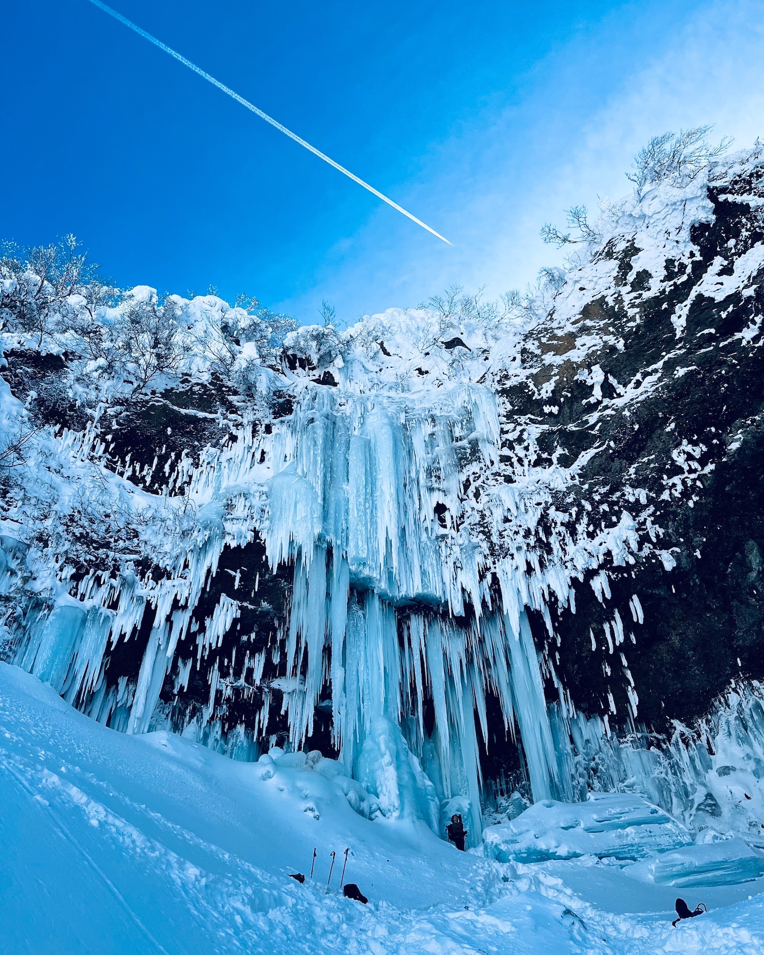 がんばって歩いてきた先には、仙人沢アイスガーデンの神秘的かつ大迫力の光景が目の前に広がります!本当に感動の一言です。写真や動画ではなかなか伝えきれてない凄さがあるので、実際にご覧いただきたいです!