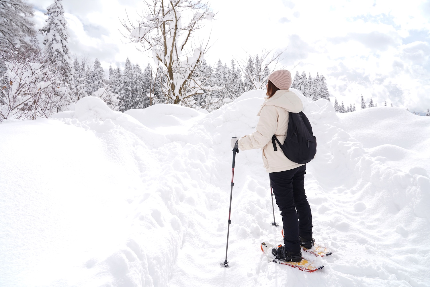 雪山を歩き、その後に銀山温泉を訪れることで、豪雪地帯にひっそり佇み時を止めたノスタルジックな世界をより深く感じることができます。
